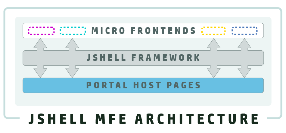 The micro-frontend framework ties together the micro frontends and the host page in which they reside. It manages loading and unloading of micro frontends and any other contractual work to get the micro frontends to work on the host page. JShell provides this framework.