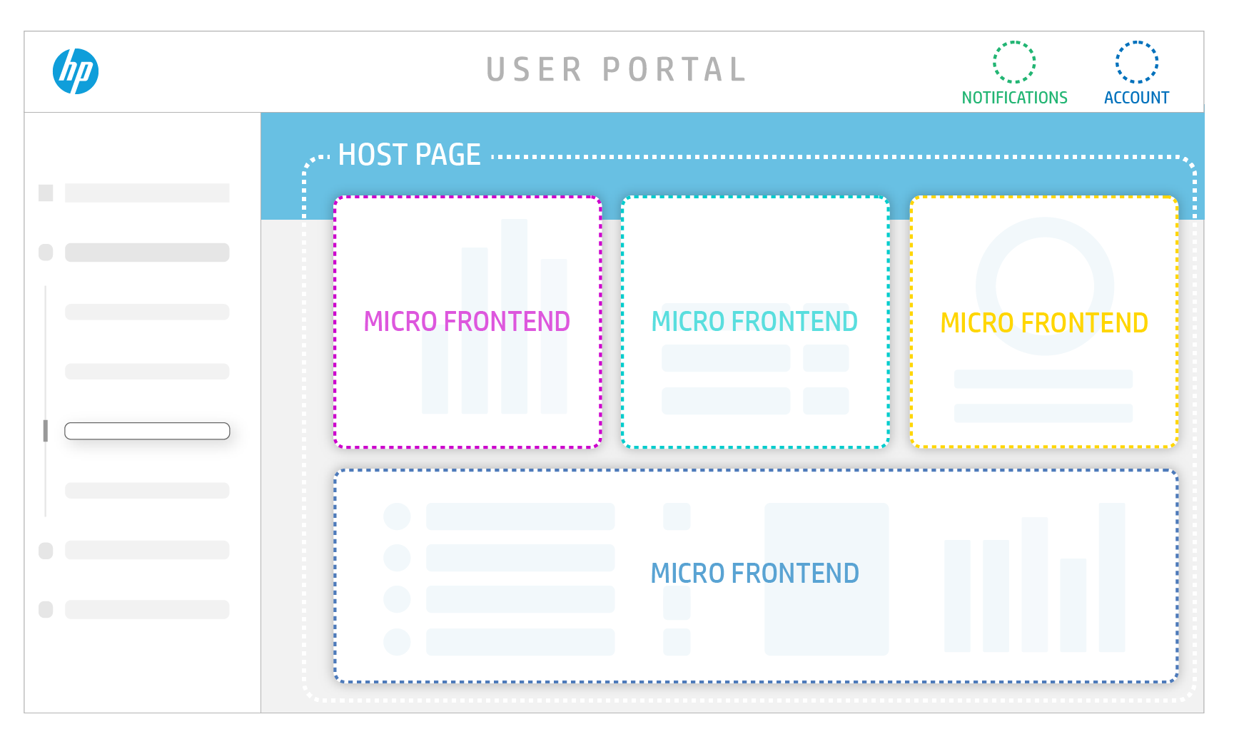 As various HP dev teams build out services for users, JShell provides tools to encapsulate these services as reusable micro frontends (blocks of UI). Then, factors like user roles, entitlements, program level, context, etc., can determine which services are made available to the user.